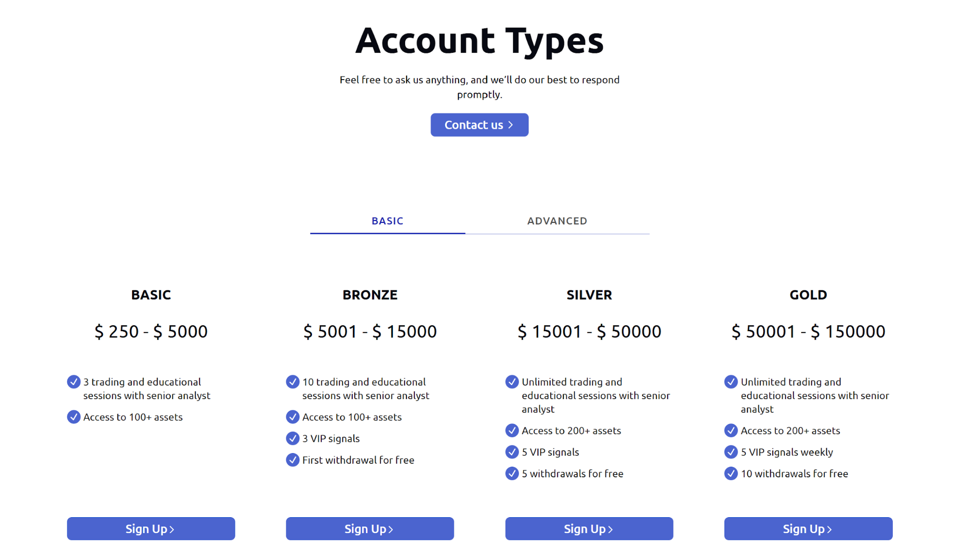 | Account Types | Basic, Bronze, Silver, Gold, Platinum, Diamond, Black |